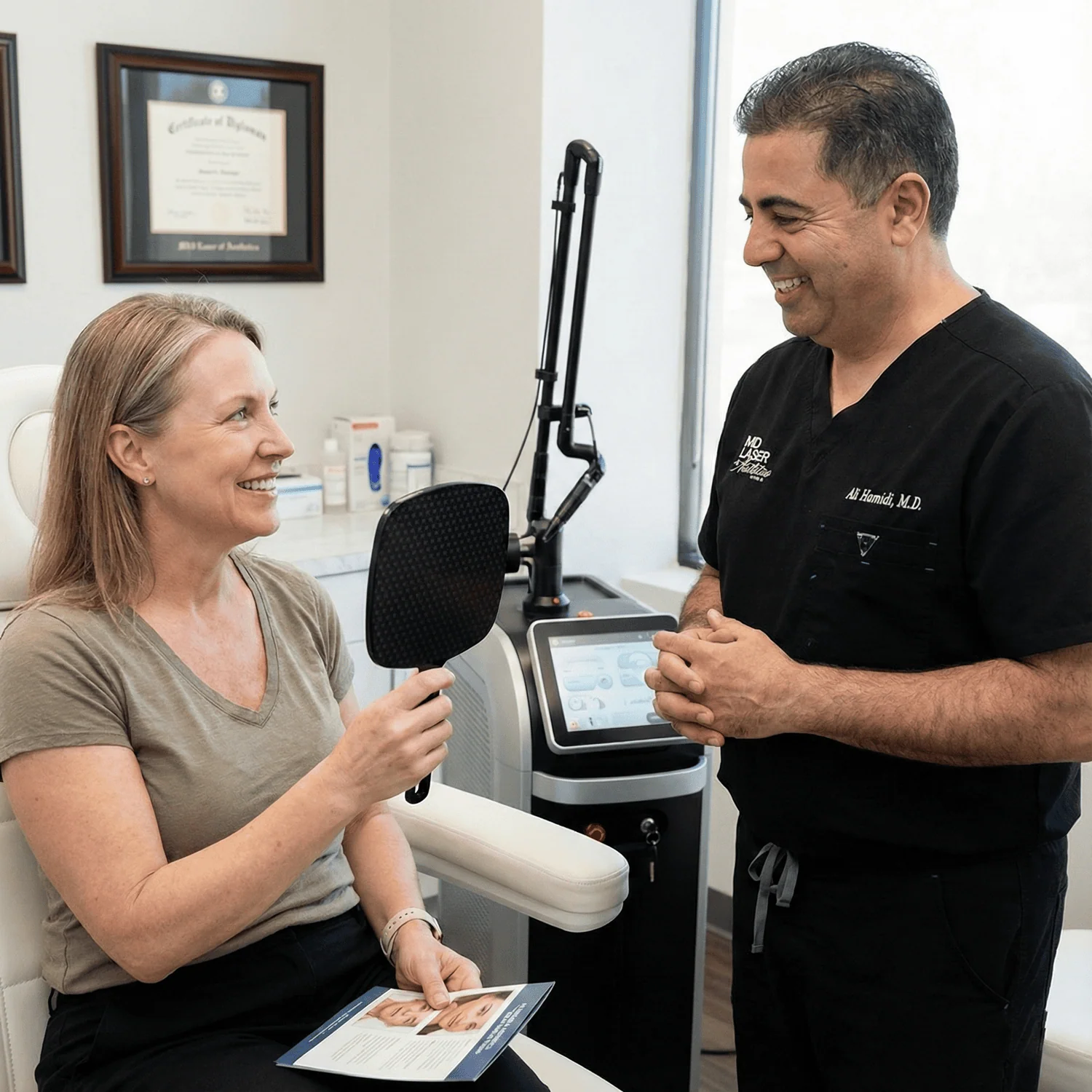 Dr. Hamidi performs 100% of all laser treatments. We do not delegate to nurses or aestheticians.